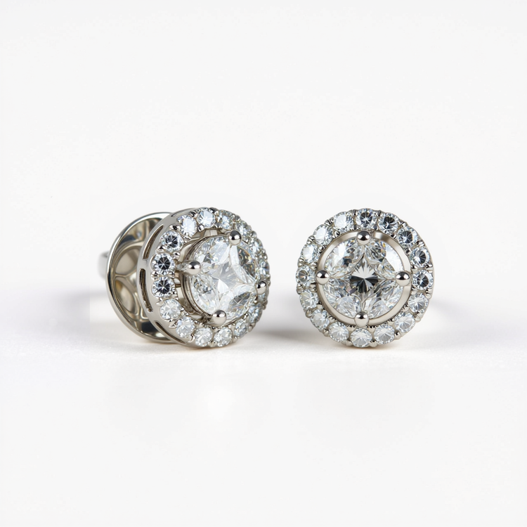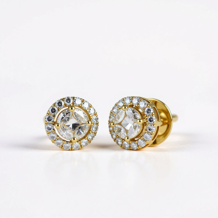 Luxurious Diamond Halo Stud Earrings | 18k Gold