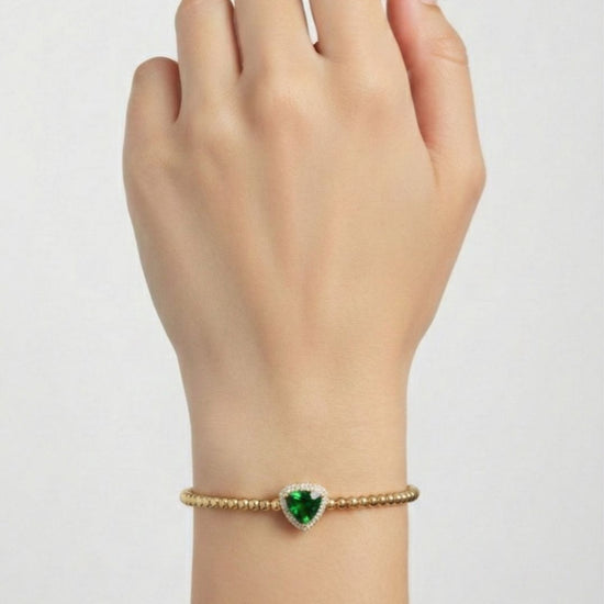 "Elegant 18K yellow gold bracelet featuring a stunning emerald-green gemstone. A timeless piece that combines luxury with a touch of nature-inspired color, perfect for adding sophistication to any outfit."