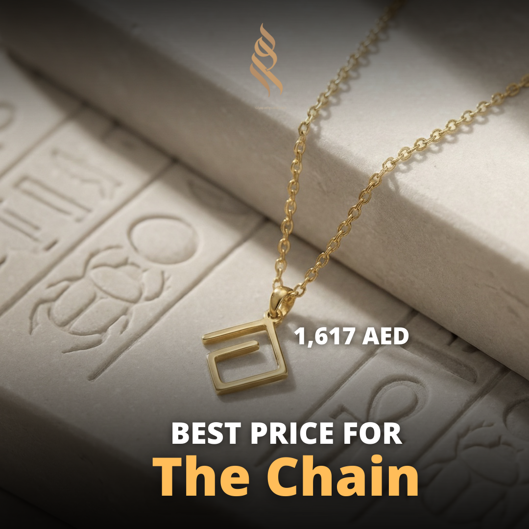 This 18K gold hieroglyphic letter chain is more than a piece of jewelry it is a symbol of identity and timeless heritage.