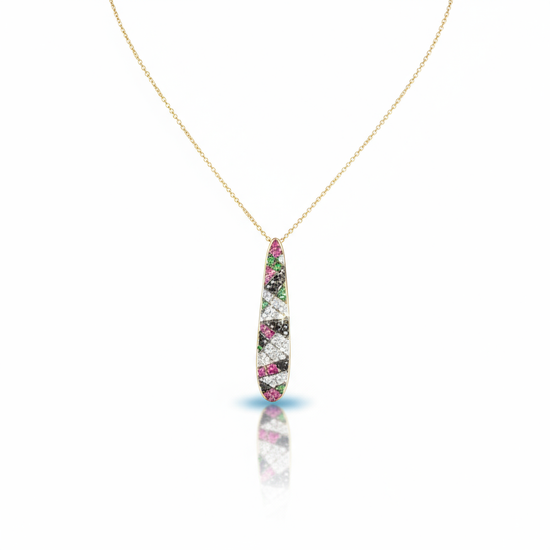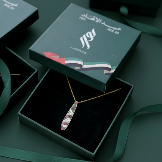 Celebrate UAE National Day with the luxurious "Spirit of the Union" necklace, specially designed with diamonds to reflect the colors of the Emirati flag and its spirit of unity. An elegant and symbolic piece of jewelry befitting the beauty and pride of the UAE.