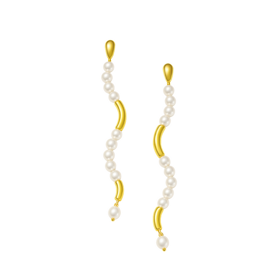 A 21K gold earring featuring a white pearl at its center, symbolizing purity and sophistication. With its blend of classic and modern aesthetics, this piece embodies elegance that never fades, perfect for every refined occasion.