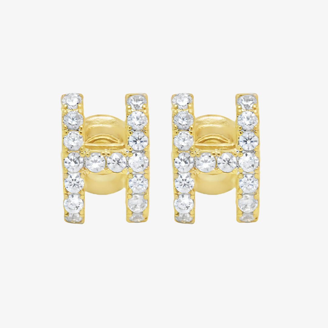 21-carat gold H-shaped earrings, adorned with lab-grown diamonds for a radiant and elegant look.