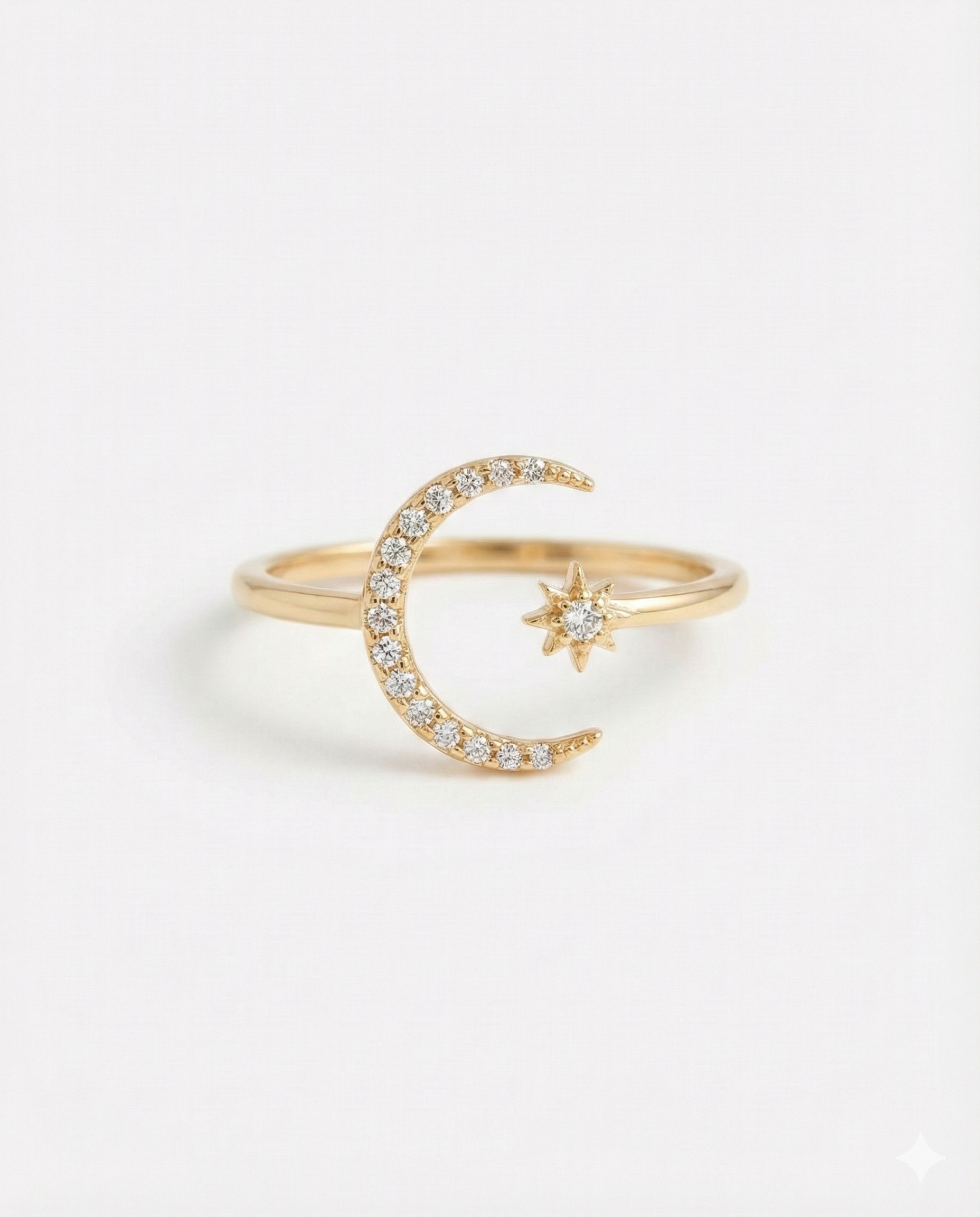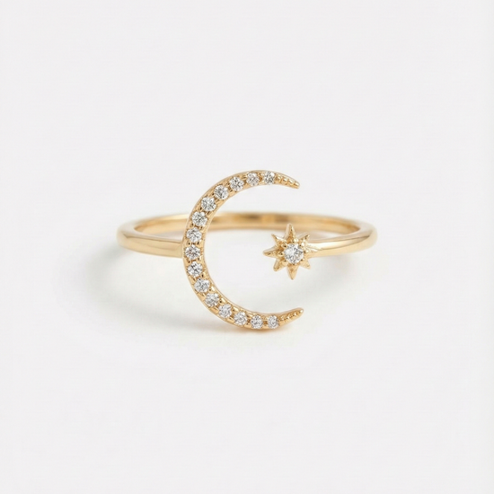Made in 18k gold and lab diamonds A minimalist gold open ring featuring a subtle celestial design
