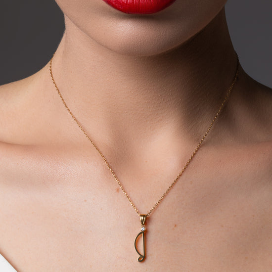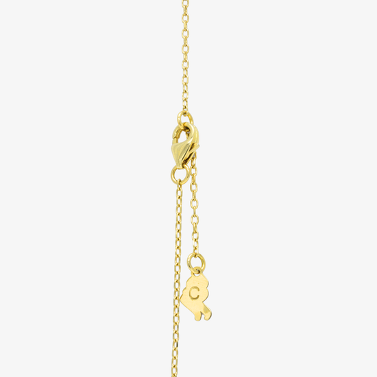 Necklace with the letter 'C' in hieroglyphics, 18k gold, adorned with lab diamonds