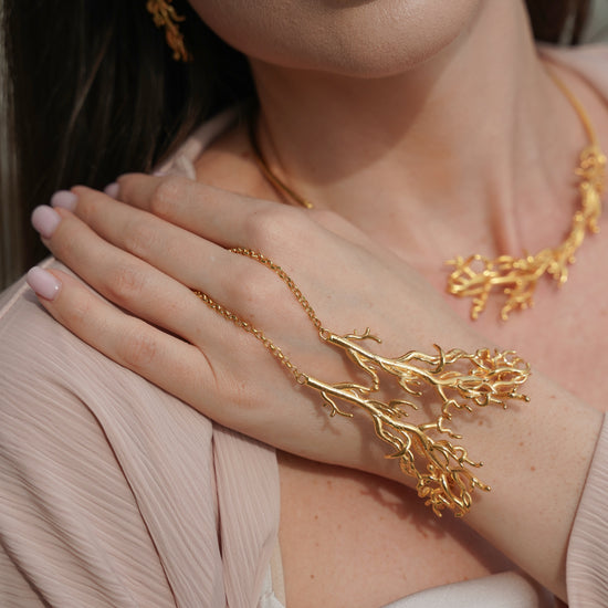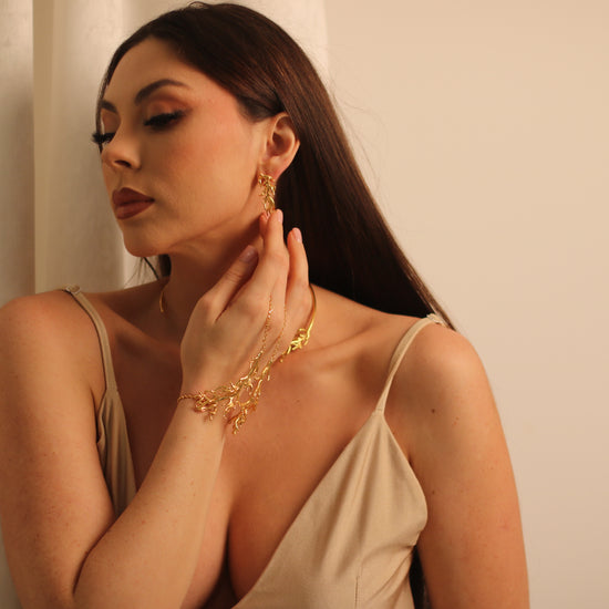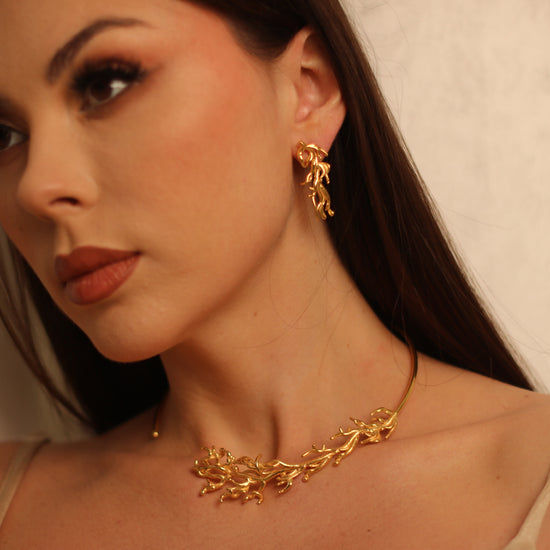 Delicate and enchanting, this 21K gold set draws inspiration from
