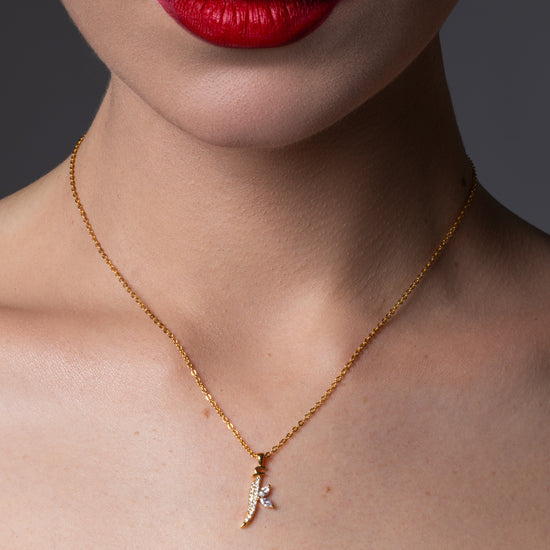 Arabic script necklace with the letter 'Alif' encrusted with diamonds