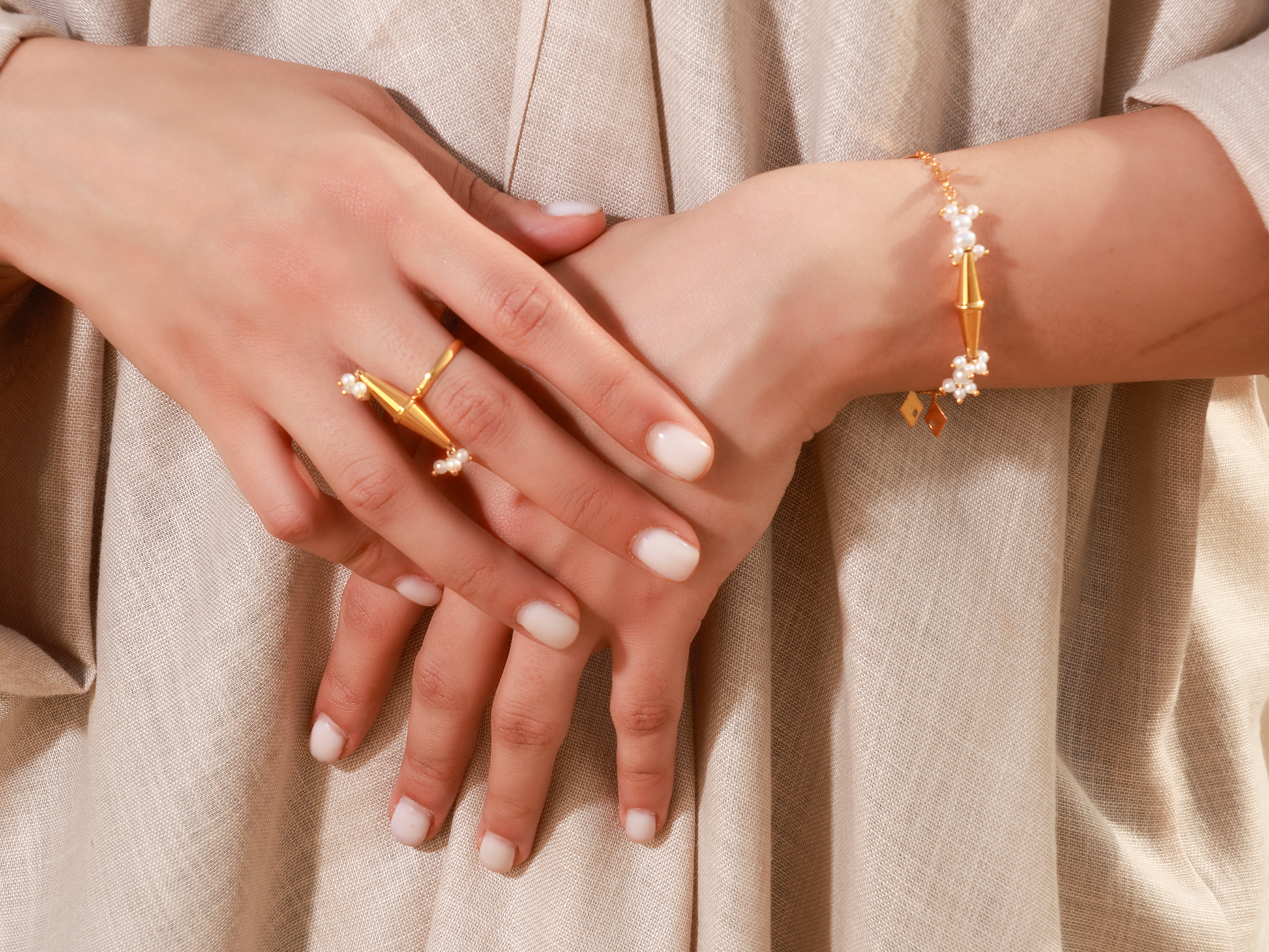 21K gold bracelet with a luxurious design that reflects the brilliance of glory and timeless elegance, adding a touch of refined femininity.