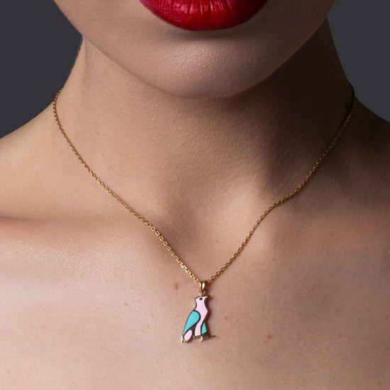 Inspired by ancient Egyptian art, made from solid 18K gold A vibrant and unique necklace featuring the hieroglyphic letter “U,” adding a touch of history with a pop of color.